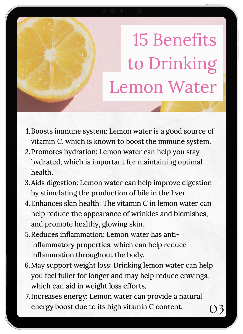 - Promote better health and vitality by enhancing your body's natural detoxification processes with the help of lemon water!